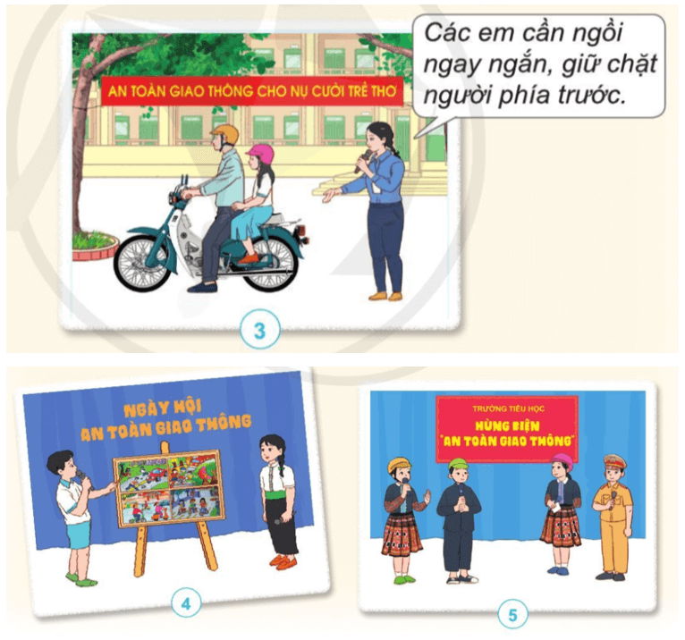 - Tranh 3: Lắng nghe kiến thức về an toàn giao thông.