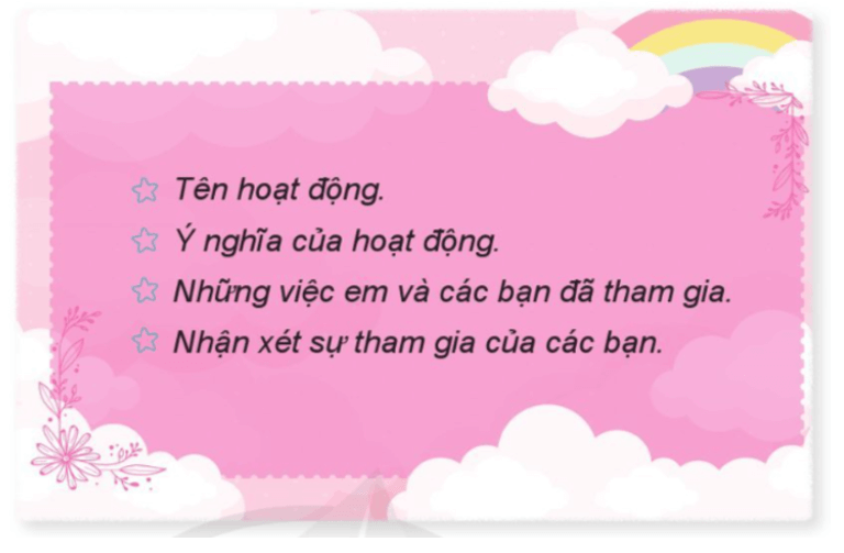 Giải Tự nhiên xã hội lớp 3 trang 28 câu 1: Chọn một hoạt động kết nối với xã hội mà trường em đã tổ chức và thảo luận theo gợi ý sau.