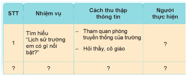 1. Lập kế hoạch để tìm hiểu về truyền thống nhà trường