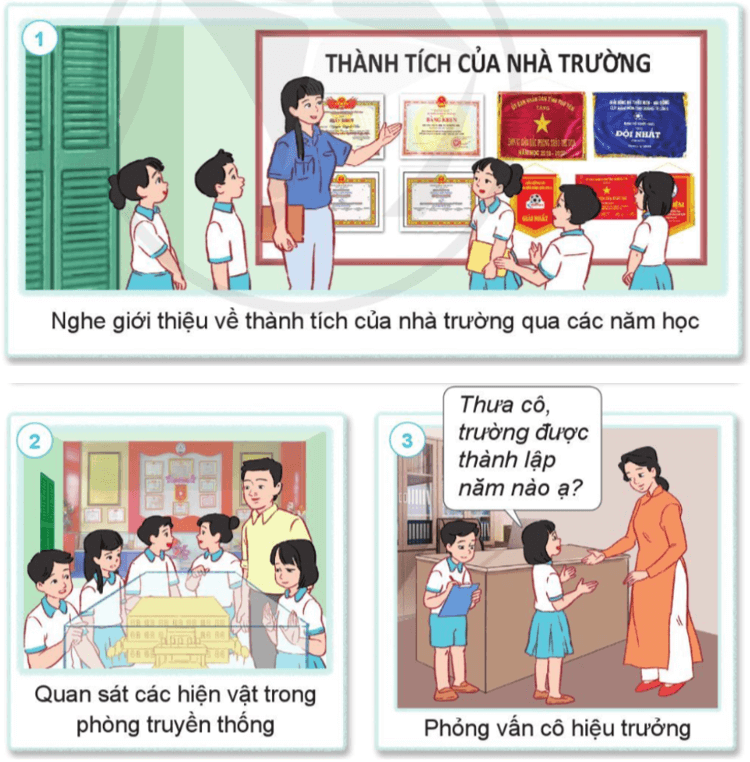 - Tham quan phòng truyền thống của trường. - Hỏi thầy, cô giáo. |