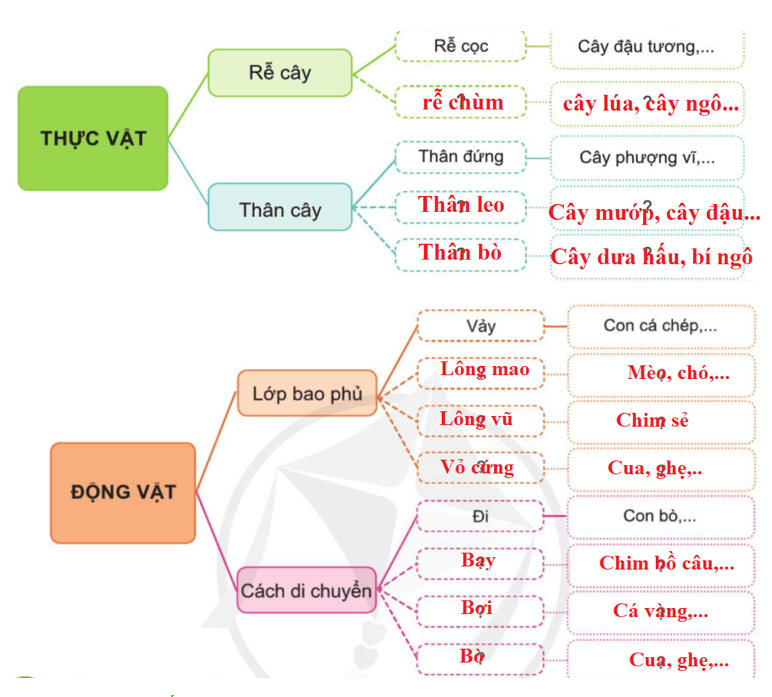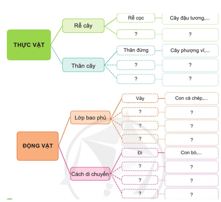 Giải Tự nhiên xã hội lớp 3 trang 80 câu 2: Hoàn thành sơ đồ phân loại thực vật và động vật theo gợi ý dưới đây.