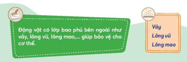 Giải Tự nhiên xã hội lớp 3 trang 73 câu hỏi: Nhận xét và so sánh về lớp bao phủ, cơ quan di chuyển của các con vật mà em biết.