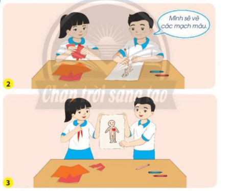 Học sinh cùng bạn vẽ, xé, dán sơ đồ cơ quan tuần hoàn và chia sẻ.