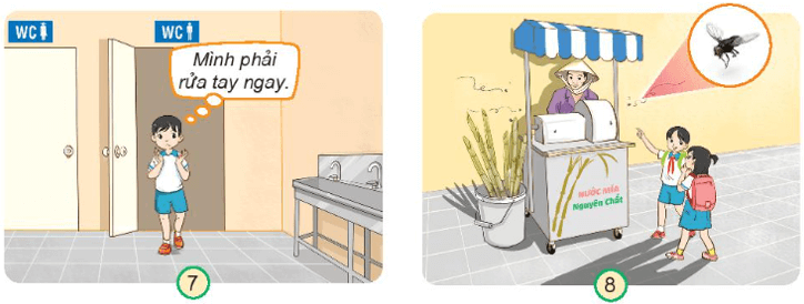 + Hình 7: Rửa tay sau khi đi vệ sinh. Vì để đảm bảo vệ sinh.