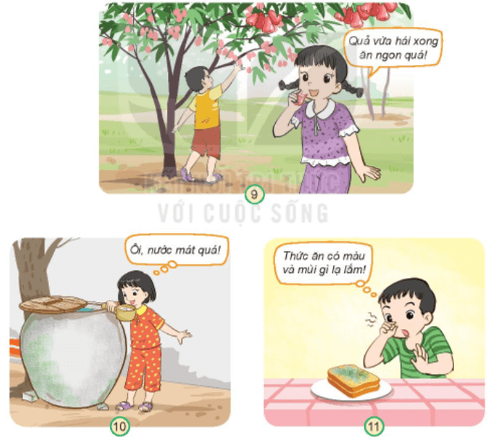 - Tình huống 1: Em sẽ nói với bạn không nên ăn quả trên cây ngay sau khi hái, cần rửa sạch rồi mới ăn. Vì quả trên cây có thể chứa bụi cẩn và vi khuẩn, khi ăn vào dễ gây đau bụng.