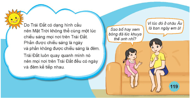 Giải Tự nhiên xã hội lớp 3 trang 118 câu 2: Vì sao toàn bộ bề mặt của Trái Đất không được Mặt Trời chiếu sáng cùng một lúc?