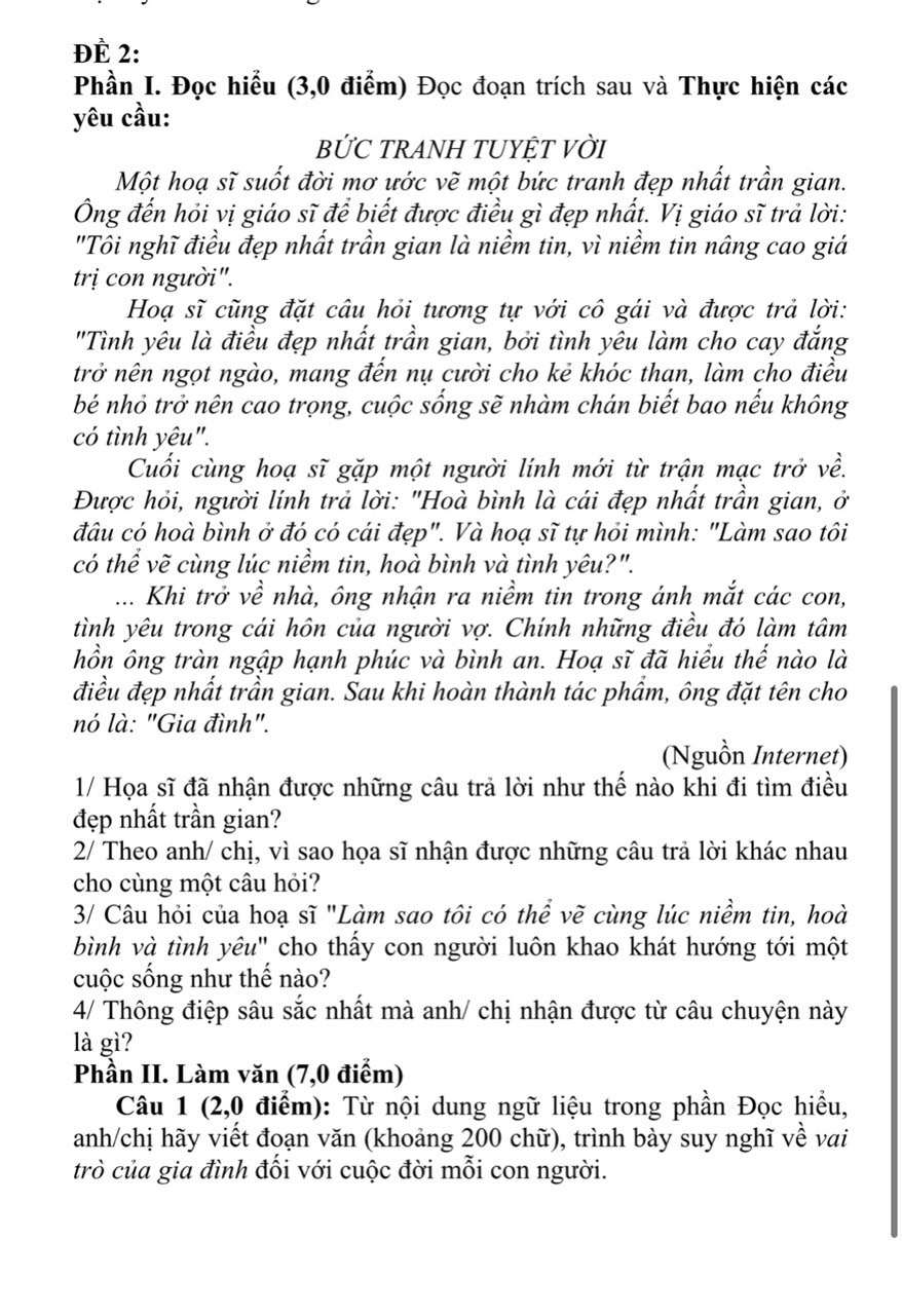 Từ nội dung ngữ liệu trong phần đọc hiểu anh chị hãy viết đoạn văn khoảng 200 chữ trình bày suy nghĩ về vai trò của gia đình đối với cuộc đời của mỗi con người
