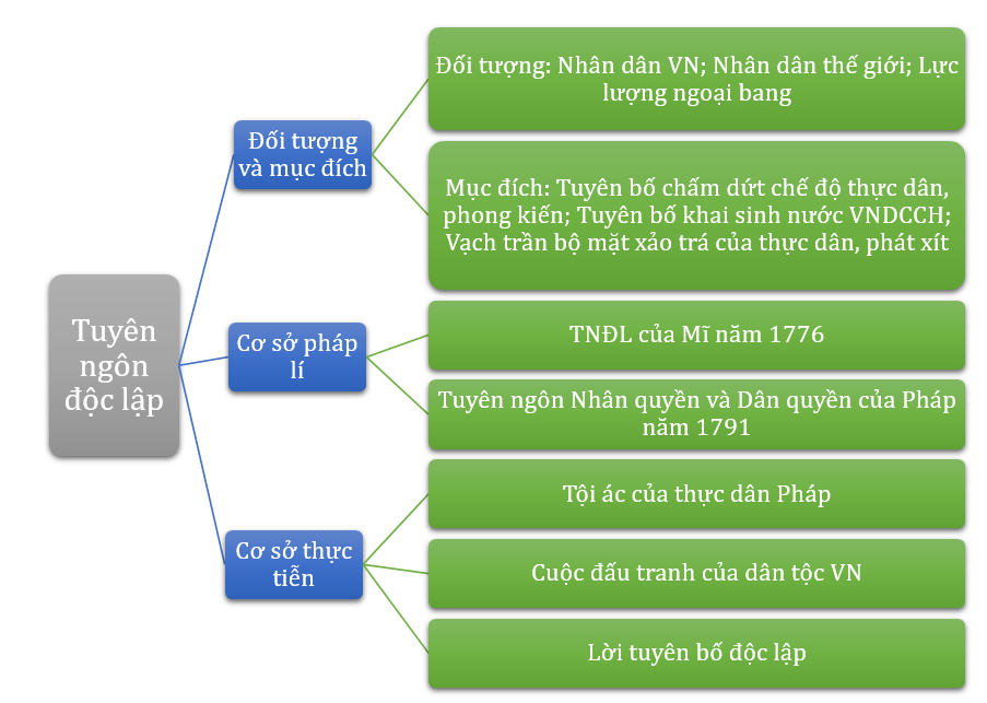 - Tuyên bố chấm dứt chế độ thực dân, phong kiến. - Tuyên bố khai sinh nước Việt Nam dân chủ cộng hòa. - Cho thế giới thấy rõ bộ mặt xảo trá của thực dân, phát xít; đồng thời bác bỏ dứt khoát các luận điệu của giặc ngoại xâm muốn quay lại đất nước ta. |