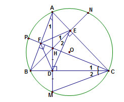Bài 1. Cho tam giác ABC có ba góc nhọn nội tiếp đường tròn (O). Các đường cao AD, BE, CF cắt nhau tại H và cắt đường tròn (O) lần lượt tại M,N,P.