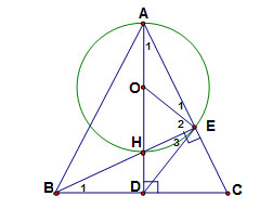 Bài 2. Cho tam giác cân ABC (AB = AC), các đường cao AD, BE, cắt nhau tại H. Gọi O là tâm đường tròn ngoại tiếp tam giác AHE.