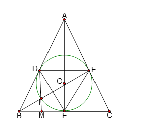 Như vậy E và F cùng nhìn BC dưới một góc 900 => E và F cùng nằm trên đường tròn đường kính BC.