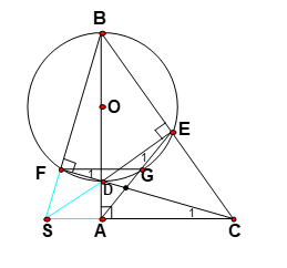 1. Xét hai tam giác ABC và EDB Ta có ∠BAC = 900 (vì tam giác ABC vuông tại A); ∠DEB = 900 (góc nội tiếp chắn nửa đường tròn )