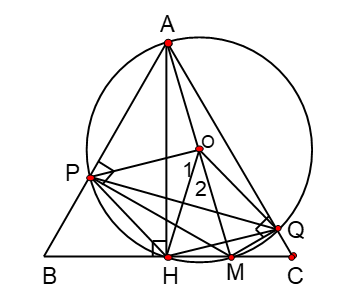=> ∠AQM = 900 như vậy P và Q cùng nhìn BC dưới một góc bằng 900 nên P và Q cùng nằm trên đường tròn đường kính AM => APMQ là tứ giác nội tiếp.