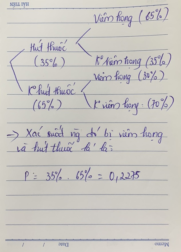 thấy anh ta bị viêm họng, tính xác suất để anh ta là người hút thuốc lá ?