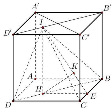 \(\Rightarrow d\left( H;(ICB) \right) = HK= \frac{HE.HI}{\sqrt{HE^{2} + HI^{2}}}\)