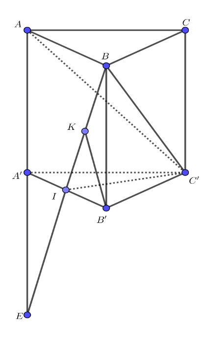 \(\Leftrightarrow d\left( A,(BIC') \right) = 2d\left(A',(BIC') \right) = 2B'K = 2.\frac{a\sqrt{2}}{2} =a\sqrt{2}\)