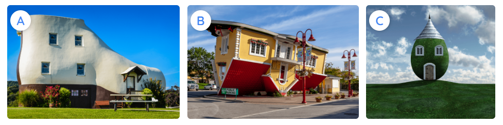 A: Tôi muốn sống ở ngôi nhà A vì nó có hình chiếc giày và tôi rất thích giày.