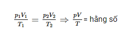 Hoạt động trang 45 Vật lí 12: Hãy dựa vào các định luật Boyle, Charles và Hình 11.1 về quá trình chuyển trạng thái của một khối lượng khí xác định để lập phương trình dưới đây về mối liên hệ giữa ba thông số trạng thái của một khối lượng khí xác định: