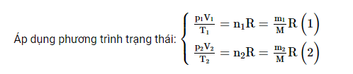 - Lượng khí còn lại m2 = (m1 - Δm) có: V2 = V; T2 = T; p2 = 2,5.106 Pa.