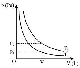 Với cùng thể tích của một lượng khí, áp suất p2 > p1 nên T2 > T1 vì khi nhiệt độ tăng thì các phân tử khí chuyển động va chạm với thành bình tăng lên, áp suất tăng lên.