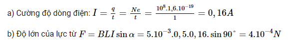 a) Nếu có 1018 electron chạy qua dây dẫn trong mỗi giây thì cường độ dòng điện chạy qua dây dẫn bằng bao nhiêu? (Cho biết độ lớn điện tích electron là |e| = 1,60.10-19 C).