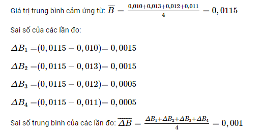 - Tính giá trị trung bình, sai số phép đo độ lớn cảm ứng từ B của từ trường nam châm.
