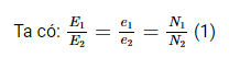 \(\frac{e1}{e2}=\frac{N1}{N2}\) hay tỉ số giữa suất điện động của hai cuộn dây luôn không đổi và bằng với tỉ số giữa số vòng dây của hai cuộn dây đó.