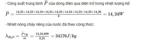Trong đó P¯τMlà nhiệt lượng do dòng điện qua điện trở toa ra trong thời gian τM và m là khối lượng nước đá.