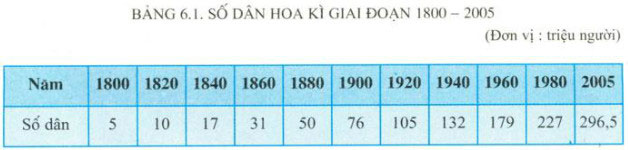 Dựa vào bảng 6.1, hãy vẽ biểu đồ thể hiện dân số của Hoa Kì qua các năm. Giải thích nguyên nhân và phân tích ảnh hưởng của gia tăng dân số đối với phát triển kinh tế.
