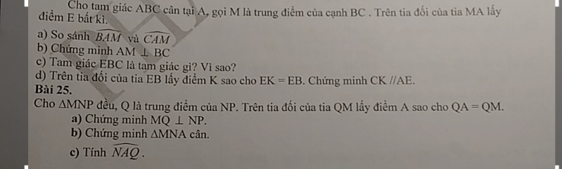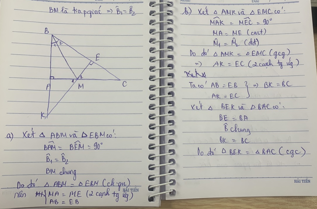 b) Chứng minh tg AMK = tg EMC, tg BEK=tgBAC