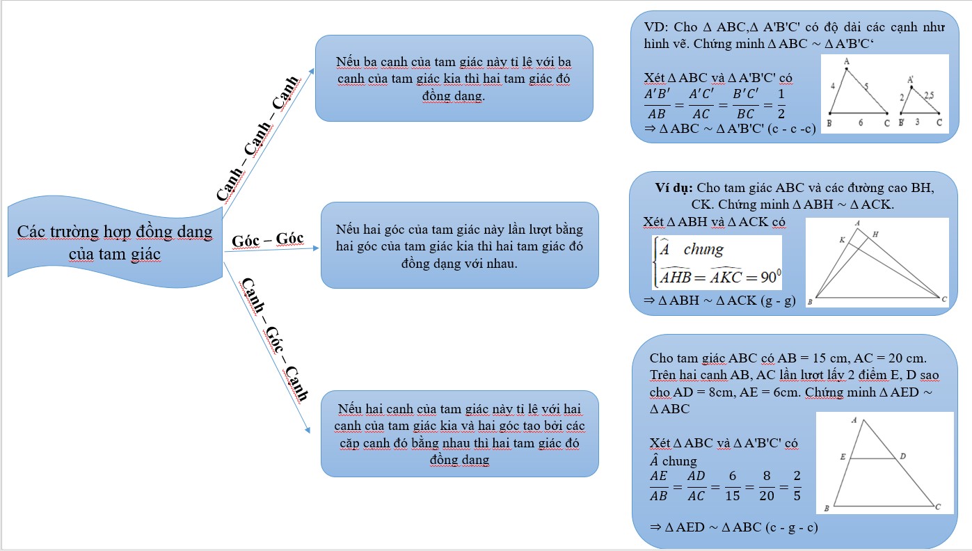 Vẽ sơ đồ tư duy về 3 trường hợp đồng dạng của tam giác