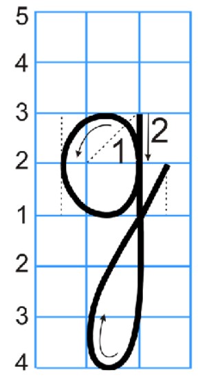 Nét 1: Đặt bút trên đường kẻ số 1 viết một nét cong sang trái xuống đường kẻ đậm thì tiếp tục cong lên đến điểm đặt bút thì chúng ta nhấc bút ra. Nét 2: Đặt bút lần 2 trên đường kẻ 1 kéo xuống 2,5 ô li thì lượn lên nét xiên tạo nét khuyết dưới, nét xiên đi lên và nét xổ đi xuống cắt nhau ở đường kẻ đậm, dừng bút ở giữa đường kẻ 1 và đường kẻ đậm. |