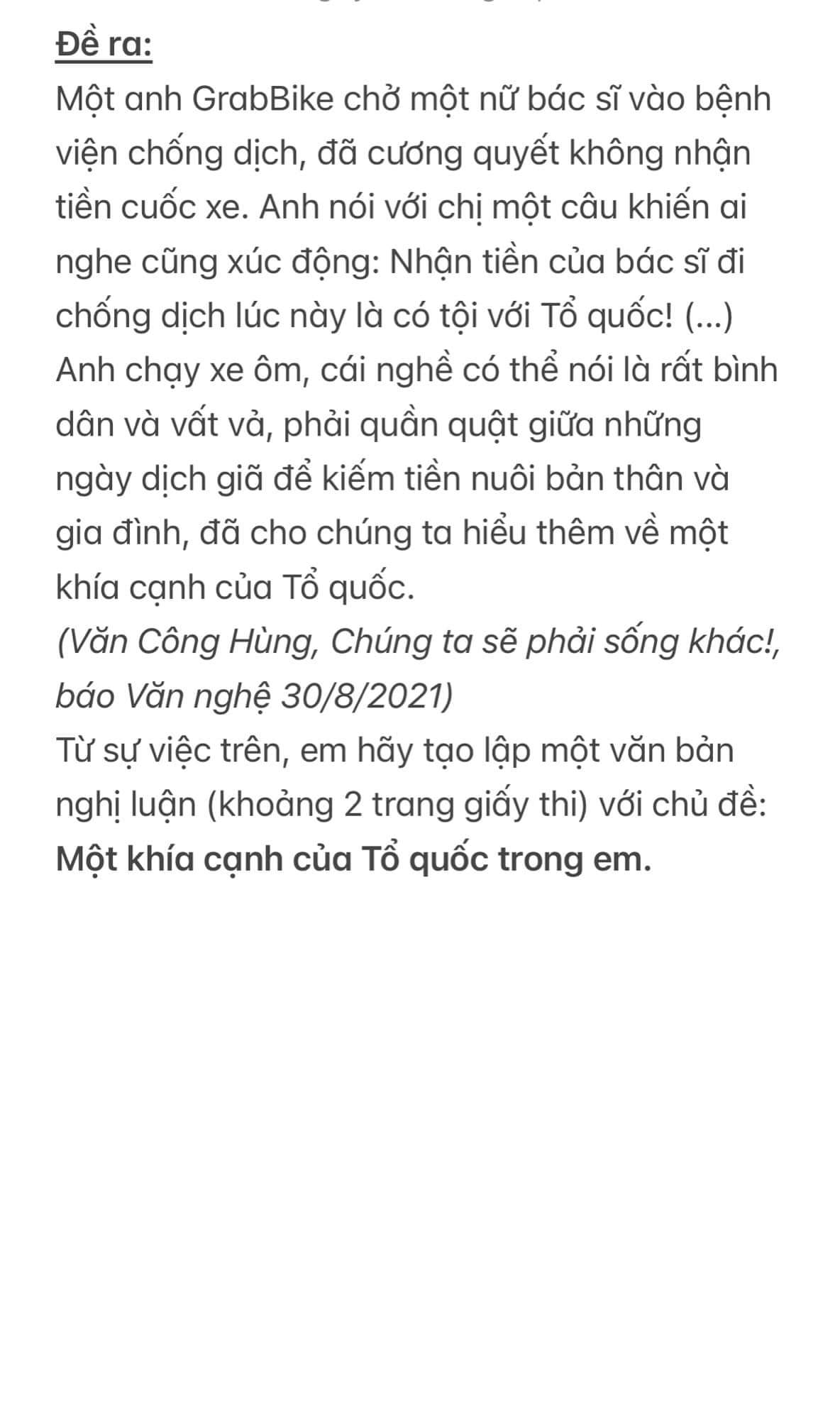 Viết một bài văn về chủ đề : Một khía cạnh của Tổ quốc trong em
