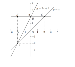 Qua điểm (0; 2) vẽ đường thẳng song song với trục hoành, cắt hai đường thẳng tại hai điểm B; C.