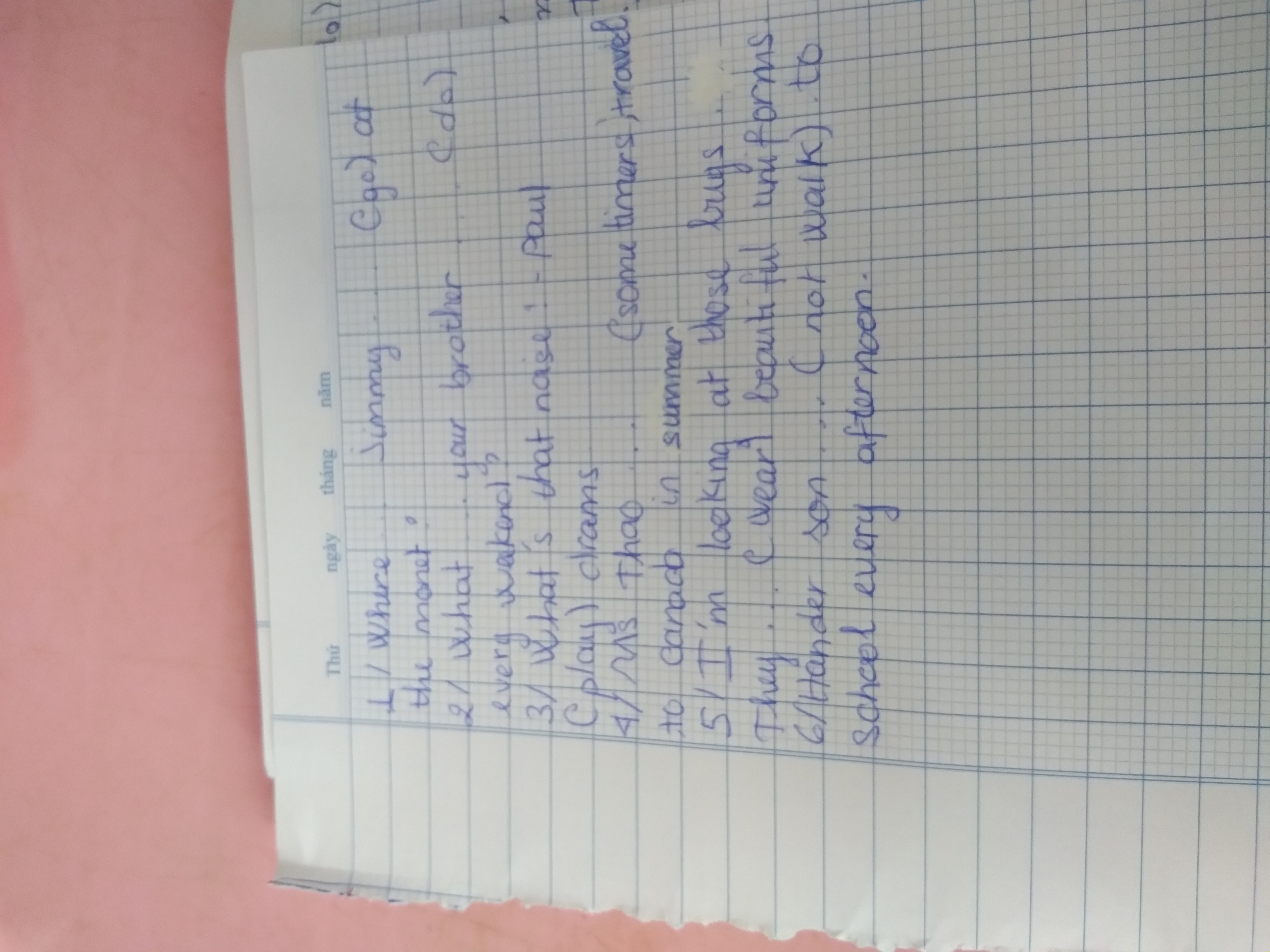 4. Ms Thao sometimes ...... (travel) to Canada in summer