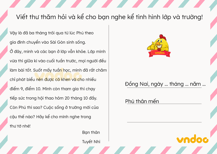 - Viết thư thăm hỏi và kể cho bạn nghe kể tình hình lớp và trường Ngắn gọn