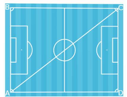 Một sân bóng đá hình chữ nhật có chiều rộng 75m, chiều dài 100m. An và Tú cùng xuất phát từ A để đến C. Đường đi của An dài bằng nửa chu vi sân bóng đá. Tú đi thẳng từ A đến C nên đường đi ngắn hơn đường đi của An là 50m. Hỏi đường đi của Tú dài bao nhiêu mét?