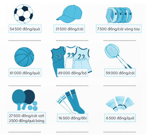 Em có 100 000 đồng, em định mua hai hoặc ba món hàng trong các mặt hàng dưới đây.