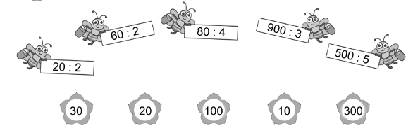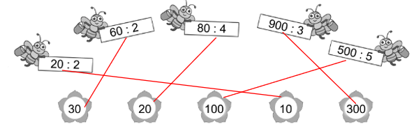 Học sinh thực hiện chia nhẩm để tính kết quả của phép tính và nối với kết quả tương ứng.