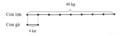 Một con lợn cân nặng 40 kg, một con gà cân nặng 4 kg. Hỏi con lợn cân nặng gấp mấy lần con gà?