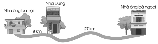 - Tìm quãng đường từ nhà ông bà ngoại đến nhà ông bà nội dài bao nhiêu ki-lô-mét, ta lấy quãng đường từ nhà Dung đến nhà ông bà ngoại cộng với quãng đường từ Dung đến nhà ông bà nội