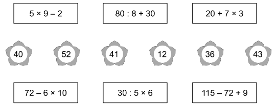 Ta thực hiện tính giá trị của từng biểu thức và so sánh kết quả mình vừa tính với kết quả đề bài.
