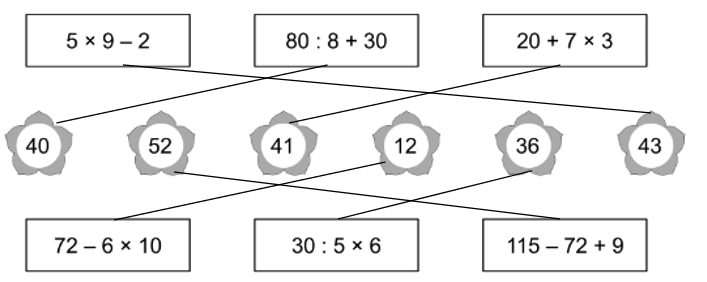 Từ giá trị của các biểu thức trên, ta nối như sau: