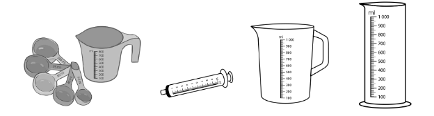 Những đồ vật có thể dùng để đo với đơn vị mi-li-lít là: Bình uống sữa cho em bé, cốc đong nước, ca đựng nước, ….