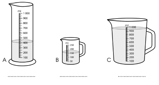 a) Đọc số đo ghi trên các đồ vật sau với đơn vị là mi-li-lít: