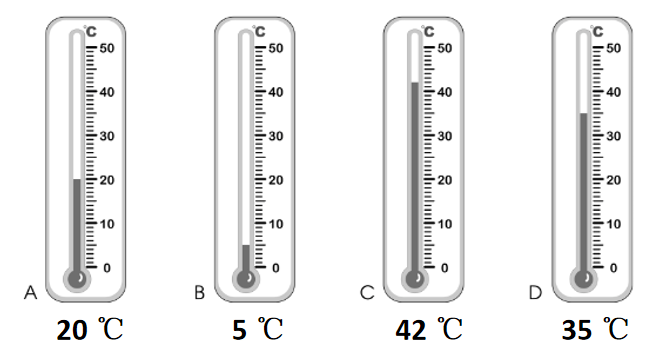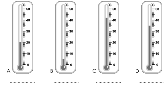 Đọc nhiệt độ trên mỗi nhiệt kế sau rồi viết vào chỗ chấm: