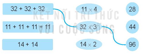 Nên 11 + 11 + 11 + 11 = 11 x 4 = 44