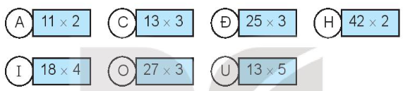 Kết quả của mỗi phép tính được gắn với một chữ như sau: