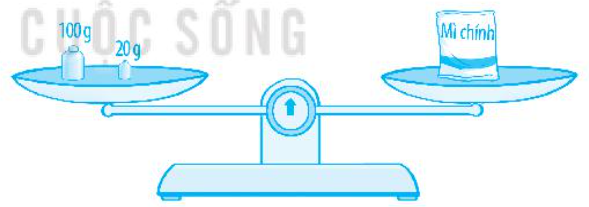 c) Gói mì chính cân nặng 120g (100 g + 20 g)