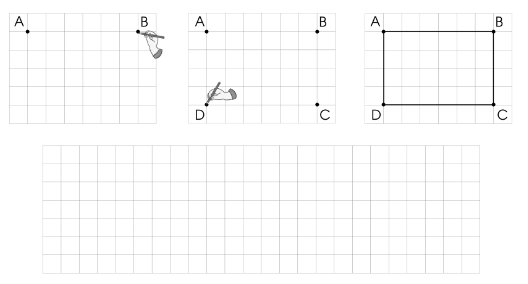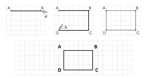 Học sinh lấy 4 điểm A, B, C, D trên lưới ô vuông, sau đó nối các cạnh AB, BC, CD, DA ta được hình chữ nhật ABCD như hình vẽ.